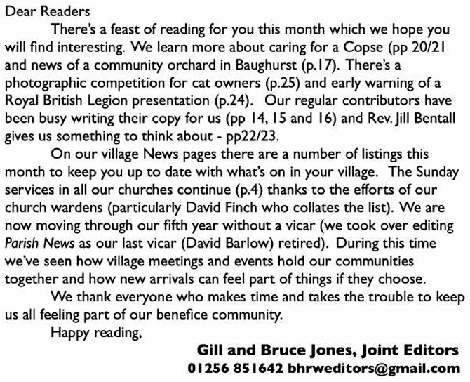 This page contains an electronic copy of the March 2025 issue of the Parish News magazine, which contains information and articles about Baughurst, Hannington, Ramsdell and Wolverton.