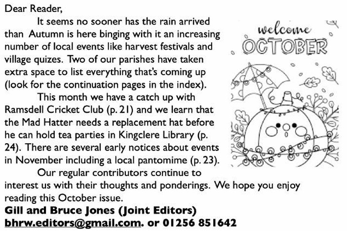 This page contains an electronic copy of the October 2025 issue of the Parish News magazine, which contains information and articles about Baughurst, Hannington, Ramsdell and Wolverton.